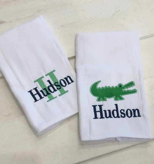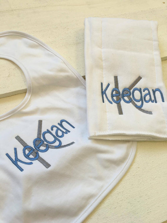 Bib and Burp Cloth Set with Monogram