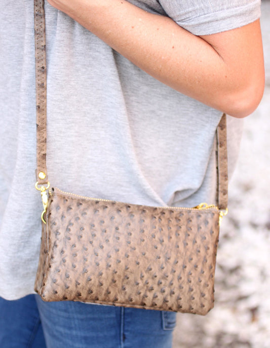 Monogrammed Clutch Ostrich Gray