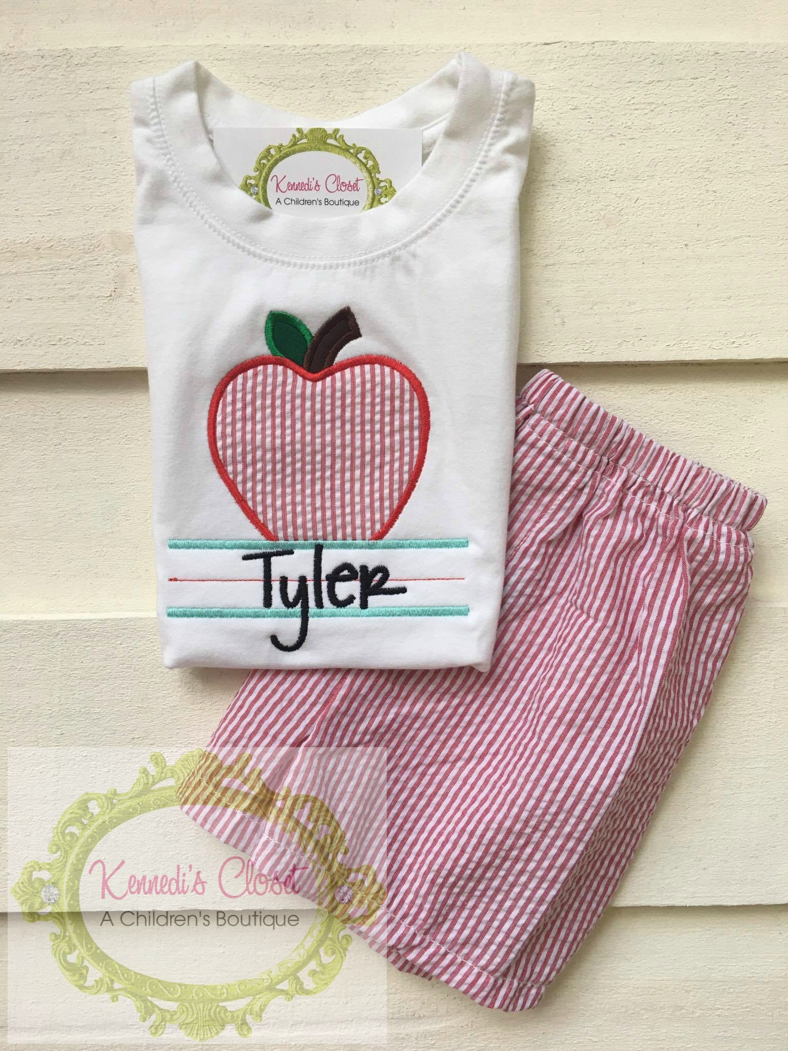 All boys need this adorable apple short set. Shorts are seersucker elastic waist.