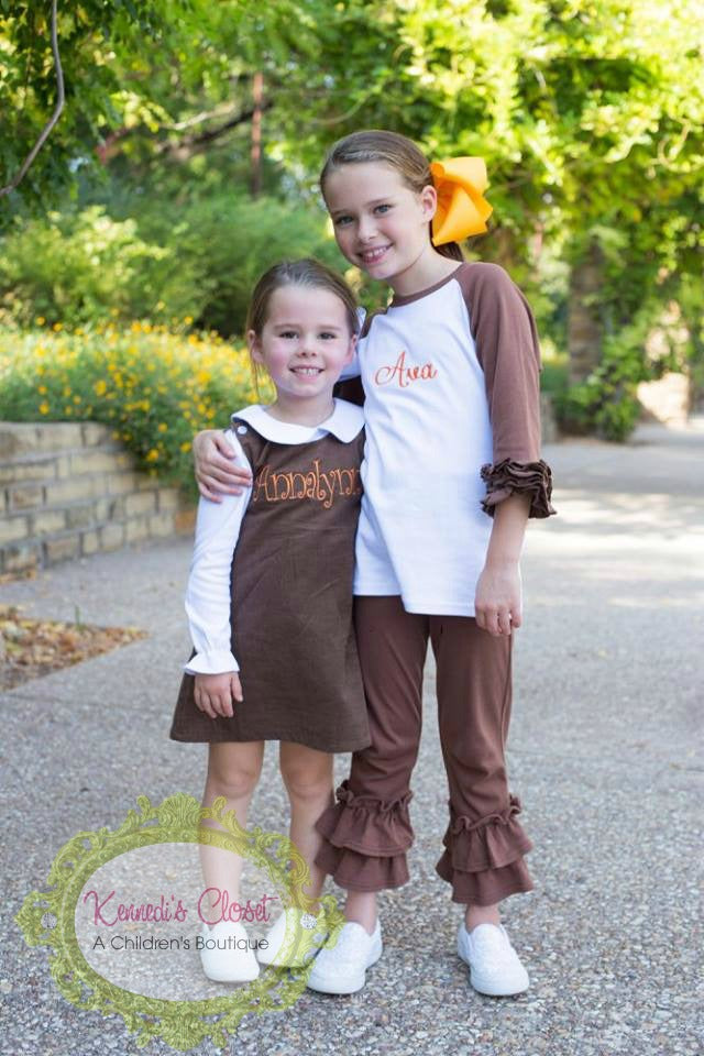 This jumper is super cute, and easy to dress up or dress down. It is perfect for embroidery or applique. It is fully lined and has 2 buttons on the shoulder straps. Looking for a sibling set? Our Jumpers match perfectly with our longalls and boys gingham/ corduroy pants. Don't forget to get a polo or peter pan collar to go under it. It is perfect for the holidays.
