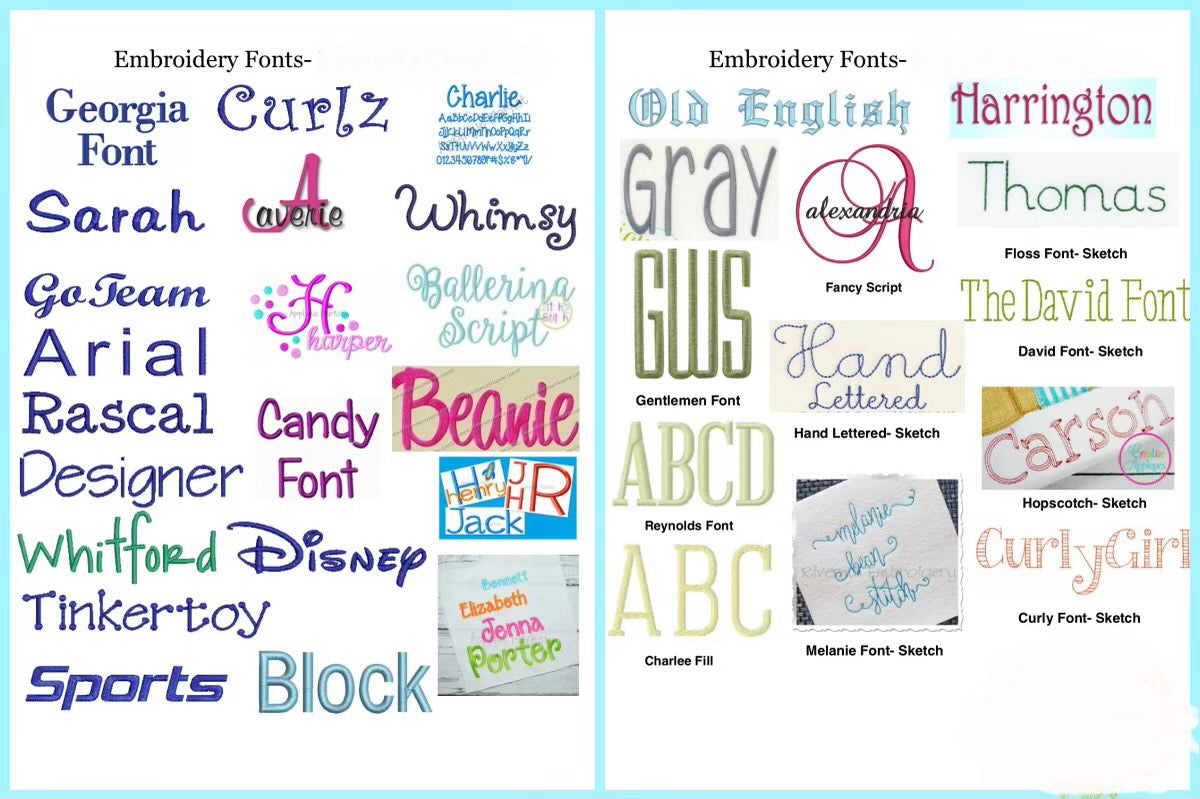 Please type the Name, Single Initial, or three letter monogram. Note: For three letter monograms write initials in order to be monogrammed- First, LAST, Middle. For initial behind the name please select TWO colors.
