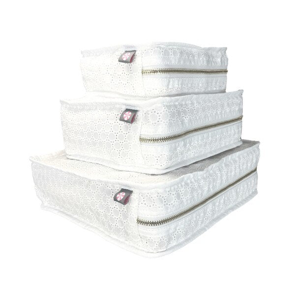 We LOVE these stacking sets! They are the ultimate organization and travel accessory! They will keep your suitcase organized for your grown up weekend away. New parents can keep diapers, wipes, and toys easily accessible in your diaper bag! College girls get ready! They are perfect for clothing items, makeup, brushes, etc! Add your monogram to your set to really make it POP!