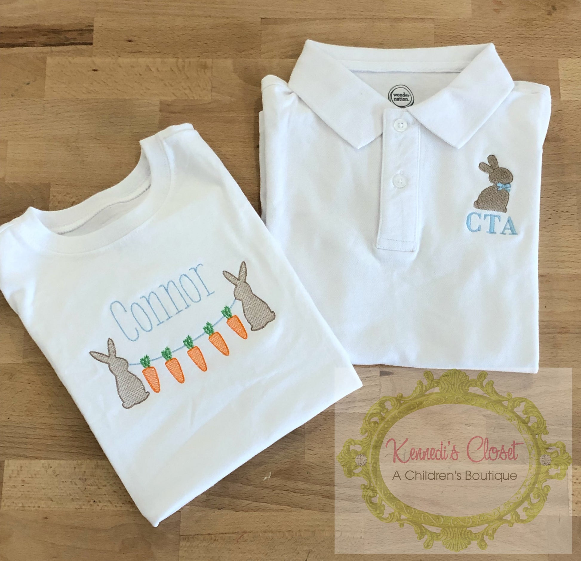 Polo will be single bunny with monogram.