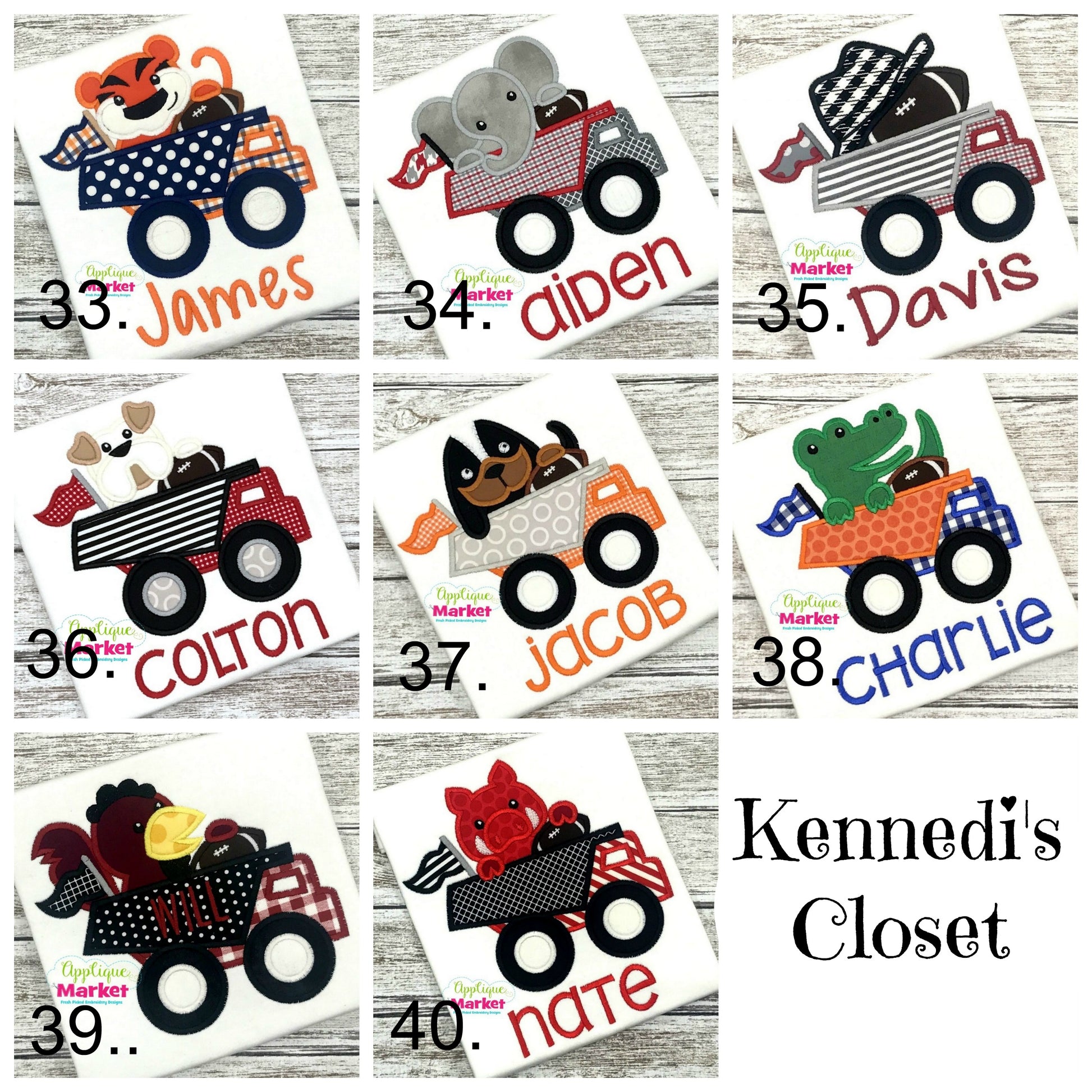 This is for our Sports Appliqué Sale going on now through Thursday. To purchase: post sold, appliqué #, monogram, size, color shirt and email.