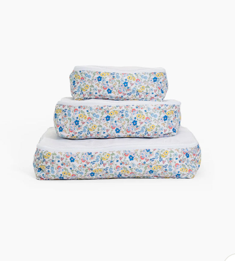 Packing Squads - are a TRVL Game changer!! Make packing organized and compact with these bags that can hold a weeks worth of clothing in a carry on! Designed in our signature prints in lightweight poly with a stretch mesh top - they fit perfectly into your luggage and drawers. TRVL made easy!