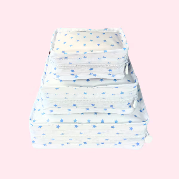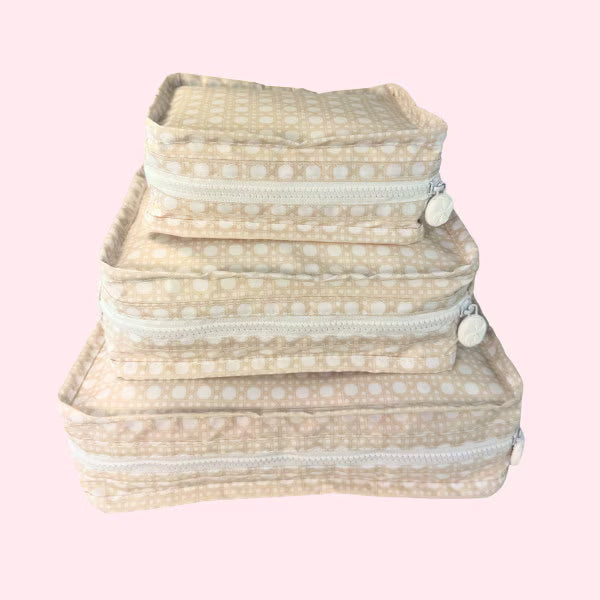 We LOVE these stacking sets! They are the ultimate organization and travel accessory! They will keep your suitcase organized for your grown up weekend away. New parents can keep diapers, wipes, and toys easily accessible in your diaper bag! College girls get ready! They are perfect for clothing items, makeup, brushes, etc! Add your monogram to your set to really make it POP!